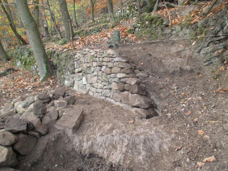 Darum arbeitete ich mich schrittweise vor. Es wird ein Stück abgetragen und die dabei gefundenen Steine zum Aufbau genutzt.