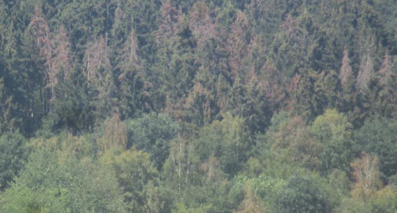Im Mischwald sind Birken und Buchen nur noch als Gerippe zu erkennen ::).