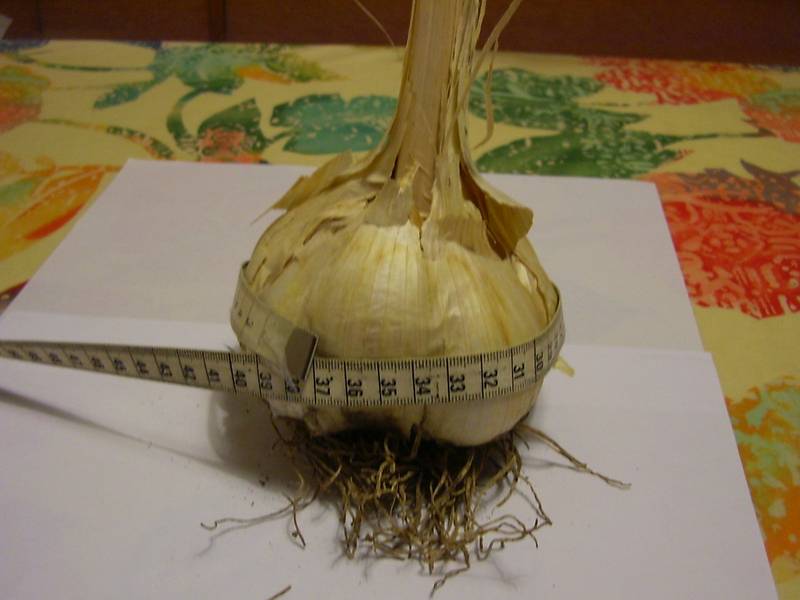 Es handelt sich um einen Elefantenknoblauch der unter diesem Namen vor Jahren, ich glaube via England eingekauft wurde. Lateinischen Namen kann ich nicht liefern, aber die großen Knollen werden hier seit Jahren als Knoblauch verwendet. Also ein paar Zehen im Herbst stecken und im Frühsommer ernten. Letztes Jahr habe ich es irgendwie verpasst und muss meine Elefantenknoblauch-Zehen im Frühjahr noch stecken. Die Sorte ist zwar nicht besonders lagerfähig - also maximal und bei trockener Ernte so bis zum zeitigen Frühjahr - aber nicht nur fermentiert in Honig und mindestens 3 Monate gereift, ist der oberlecker. ;)