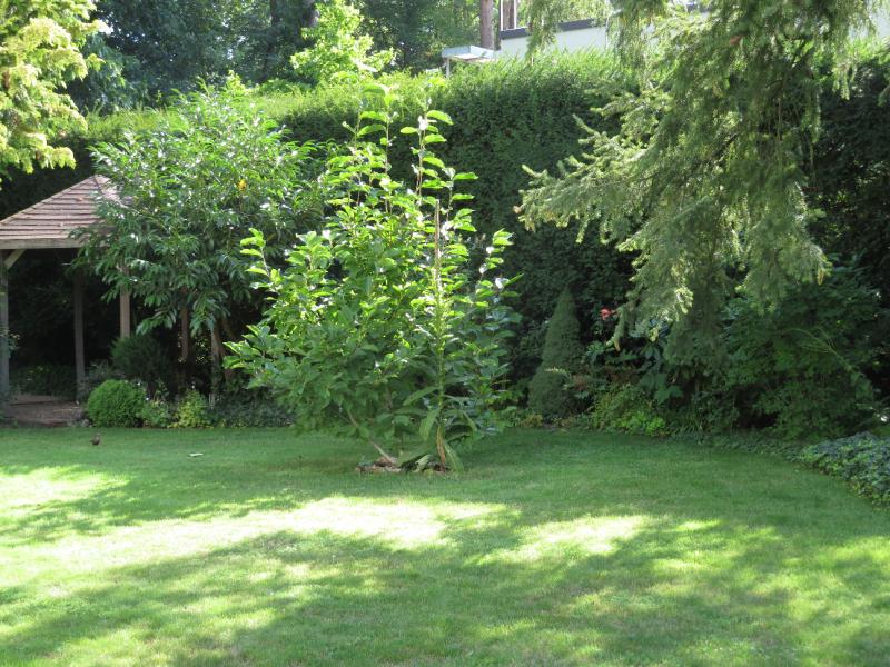 Auf jeden Fall habe ich gestern dann eine (relativ kleine) Schale Wasser und eine Schale mit Futter unter die Magnolie gestellt. Da ist es tagsüber schattig und hoffentlich genug gemähter Rasen aussenrum, dass sich die Katze nicht auf die Lauer legen kann und überhaupt, die Vögel sie rechtzeitig sehen.