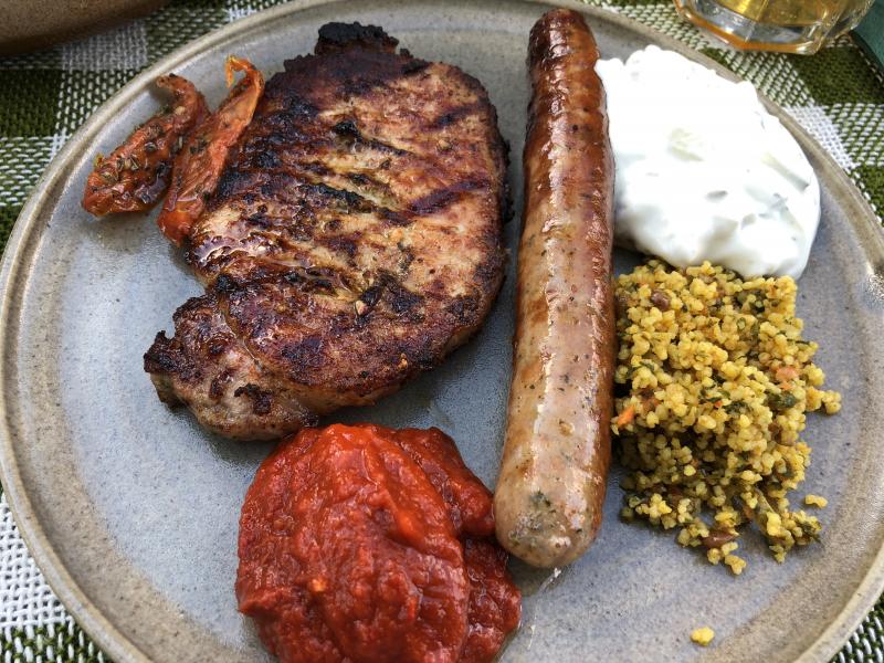 Es gab Spieße vom Grill, Erdnussdip und Mienudelsalat