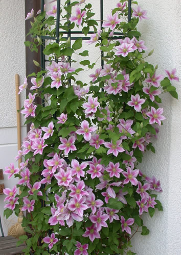Piilu und Dr. Ruppel habe ich vor dem Haus in Töpfen mit "eingebautem" Rankgitter. Diese sind über 2m hoch.