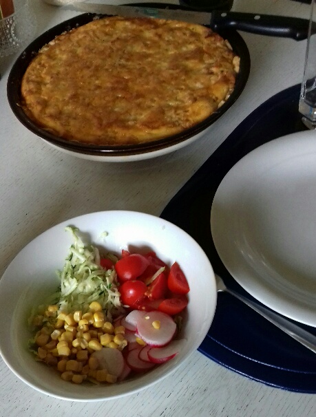 Heute gab es aber seit längerem wieder Lachs-Krabben-Quiche.