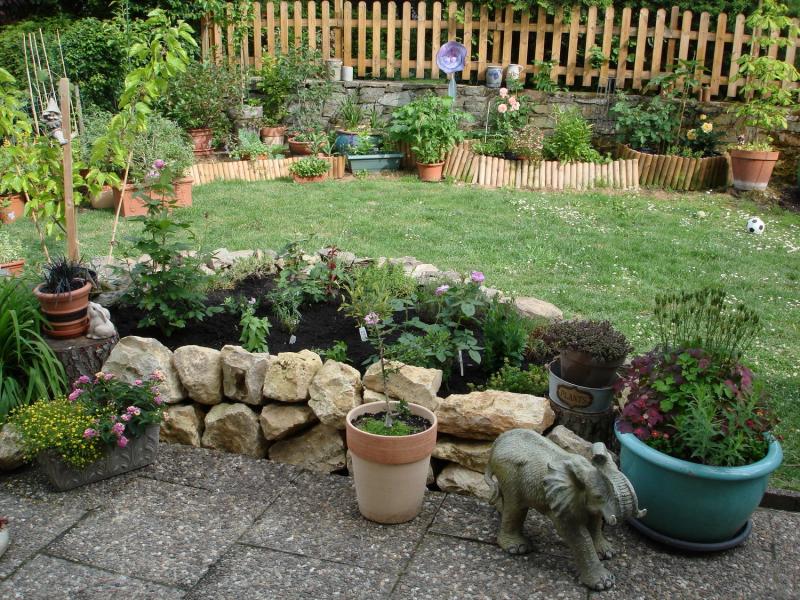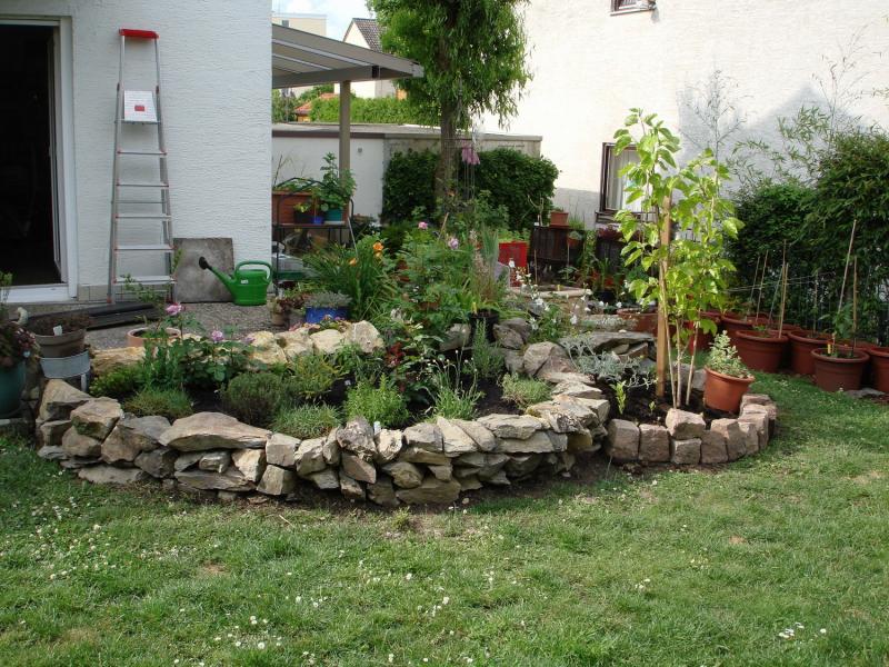 Im Frühjahr 2012 hatte mein Mann eine vierfach Bypass-OP und fiel erstmal als Hilfe aus. Die täglichen Fahrten zur Reha im Taunus nutze ich zum Steine sammeln. Daraus entstanden die ersten Beeterhöhungen.