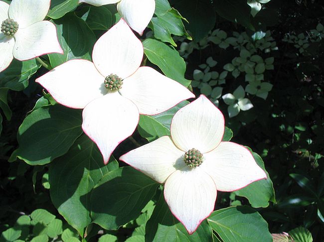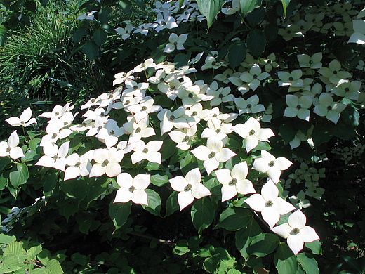 Gleichzeitig ist der Cornus kousa auf seinem weißesten Blühniveau angelangt und ergänzt sich farblich mit dem Holunder hinter der Eibezumindest aus dieser Perspektive