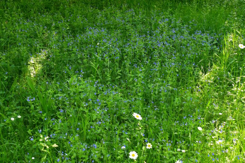 Meine Ausgangssaat waren 100% Blumenwiese von Rieger Hofmann, mit zusätzlich Klappertopf als Einzelsaat. Ich mähe einmal in Jahr, so August - September, wenn alle Blüten auf der Wiese durch sind. Für mein nächstes Wiesenstück werde ich eine Grundmischung von Rieger mit mehr Einzelsaaten erweitern, vor allem solche Pflanzen, die sich hier auf den Ausgleichsflächen der Stadt bewehren und Insektenmagneten sind (Natternkopf, Malven etc.).