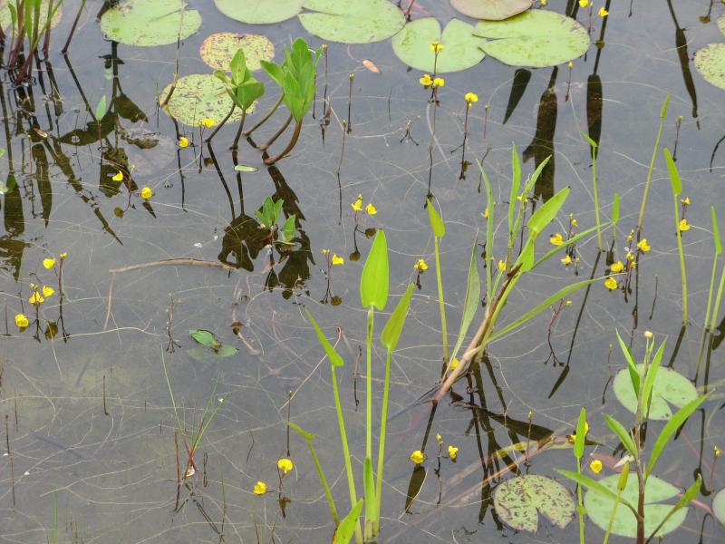 südlicher Wasserschlauch (Utricularia australis) wird an meinem Teich so langsam invasiv. Hat in net mal einem Jahr (letzts Jahr nach dem Auszug der Fische ein paar Triebe aus meinem Amphibientümpel reingschmissen) fast schon den ganzen Teich in Beschlag genommen (überall sind z.Z die gelben Blütchen zwischen den Seerosen und Sumpfstauden auszumachen)