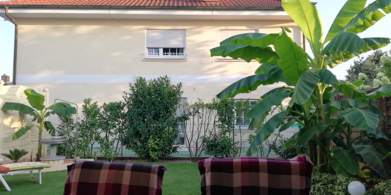 Die Fenster im EG sind durch unsere 2 Meter hohe Lorbeerhecke abgedeckt.