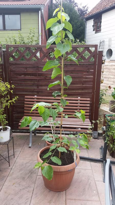 Es hat mich halt sehr gewundert das die Maulbeere nur ein langer grüner Strich ist und keine weiteren Seitentriebe zu bekommen scheint.