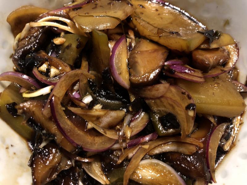 ... mit beilage: koreanischer rettich, algen und shiitake süßsauer