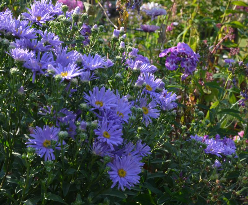 Am allerbesten sind hier die Aster amellus mit dem Wetter klar gekommen. Und da die Sorten zu unterschiedlichen Zeiten blühen, hat man lange etwas von ihnen.