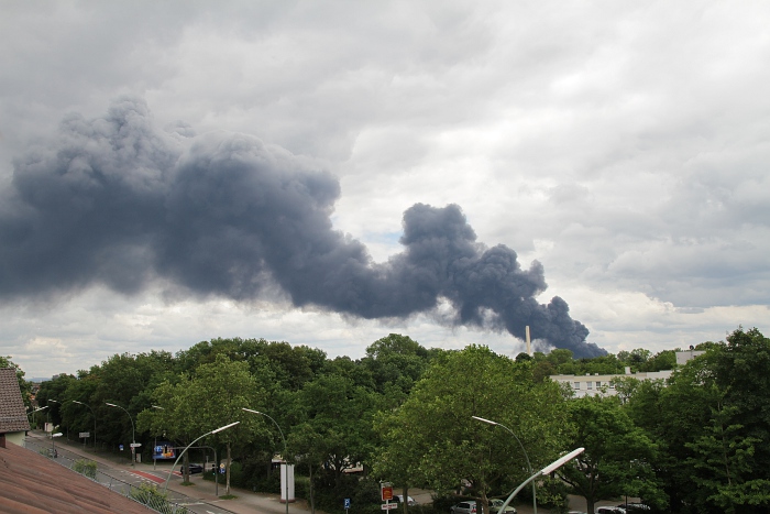Gefahr führ die Bevölkerung besteht nicht, weil die Thermik die Brandgase in höhere Luftschichten transportiert. Katastrophenschutz geht meist nur von akuten Gefahren aus.
