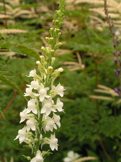 Weiter aus dem weißen Beet: Epilobium angustifolium album, das wunderschöne weiße Weidenröschen. Es wuchert - wie seine rosa Verwandte - seehr schön, sollte es hier auch, hat es hier auch, aber der Gärtner hielt die Ausläufer für Unkraut :-\ :'(