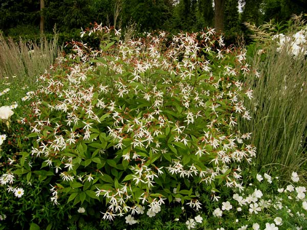 Auch aus dem weißen Beet im boga: Gillenia trifoliata sollte eigentlich in keinem Garten fehlen. Die hier gezeigte Pflanze ist allerdings kein optimales Exemplar, die Stängel sind nicht so rot wie sie sein sollten, die anderen Exemplare im weißen Beet haben die roten Stängel, sind aber noch etwas klein.