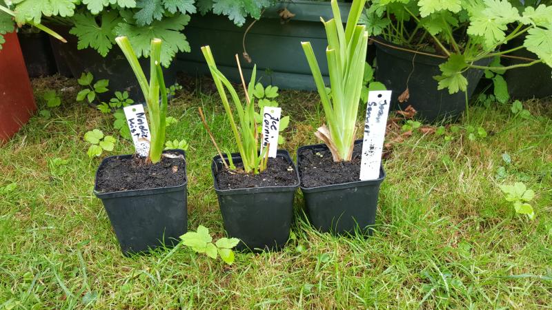 Ich habe mir gestern drei weiße Taglilien gekauft. Jeweils nur ein kräftiger Fächer, jeweils getopft in einem 9er oder 11er-Topf.