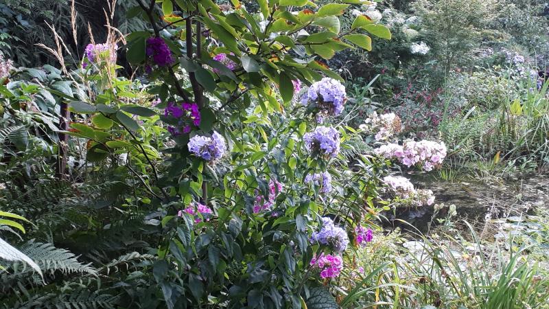 Gerade im Morgenlicht leuchteten die Phloxe am Teich besonders schön
