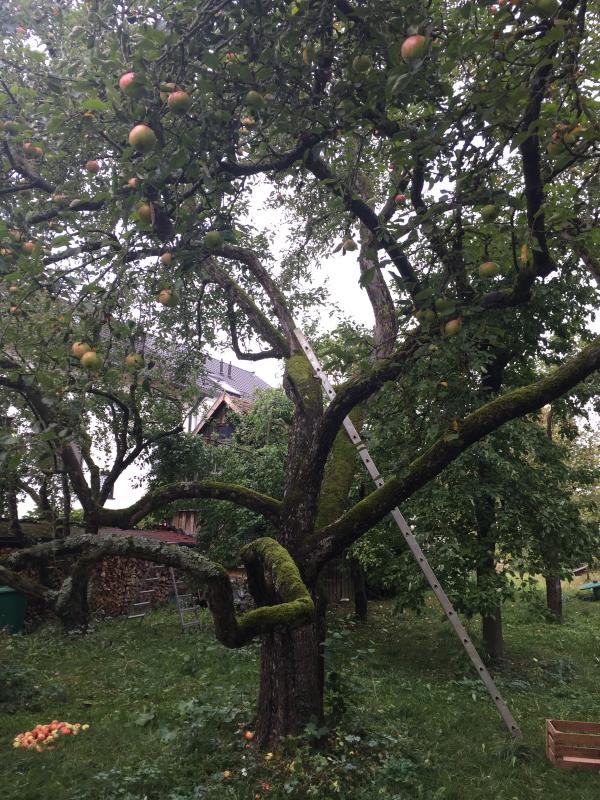 Hallo Leute, ich schiebe den Thread mal hoch, da ich mit hoher Wahrscheinlichkeit den „alten“ also gelbschaligen Gravensteiner in einem Garten mitten in Regensburg entdeckt habe..