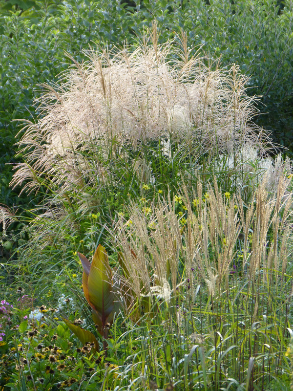 Im Beet gefällt mir 'Vorläufer' gar nicht schlecht in Kombination mit den anderen Miscanthus. Als Solitär würde es nicht viel hermachen.