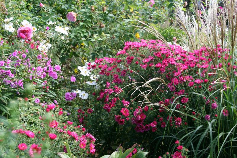 'Septemberrubin' mit 'Treffpunkt', im Hintergrund müsste 'Lutetia' blühen.