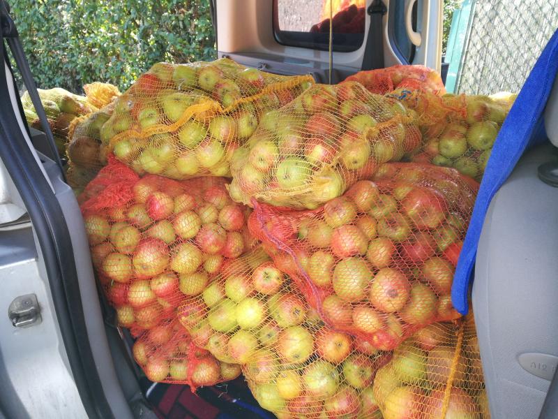 Wir lesen momentan nur Fallobst (Streuobstäpfel) zusammen und liefern es ab. Für 3 Euro/Zentner. Naja, es ist fort und mir tun die Äpfel leid. Frankfurt braucht ja schließlich auch seinen Äppelwoi.