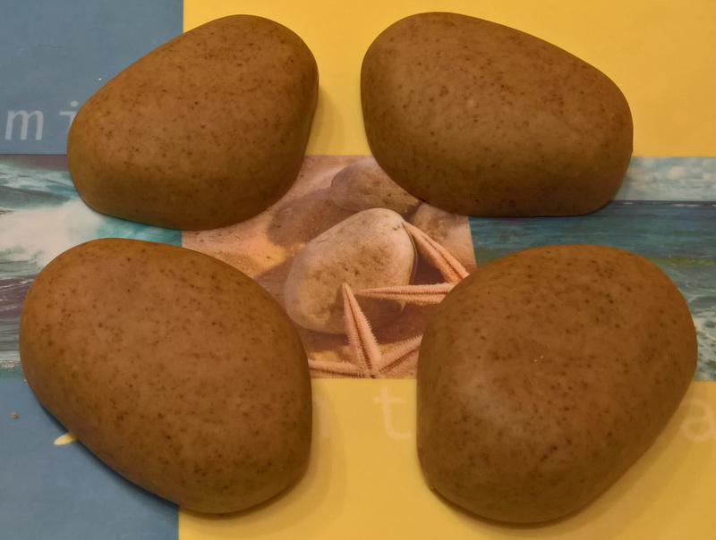 Inhaltsstoffe sind: Babassu-, Aprikosenkern-, Reiskeimöl, Sheabutter, Rizinusöl, ZS, ÜF 13%. Dann noch Veilchenwurzelpulver, Alpakawolle, Reissirup und einen Teil vom Wasser als Malvenwasser, Rest der vorherigen Seife. Duft ist „An Afternoon in the Garden“