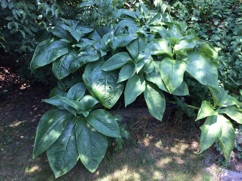 Typhonium 'indian Giant' gefällt wohl das Wetter. Trotzdem, dass er nicht ausgepflanzt ist, musste ich ich die im Schatten erst 2 mal gießen. Die Ausgepflanzten in der Sonne deutlich öfter, und die sehen dennoch schlechter aus.