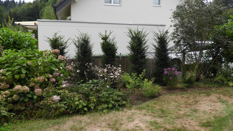 Dies deshalb, weil einerseits für mich klar ist, dass ich den Kirschlorbeer auf der Westseite teilweise entfernen lassen möchte, andererseits bin ich inzwischen sehr unschlüssig, was ich stattdessen dort haben möchte.