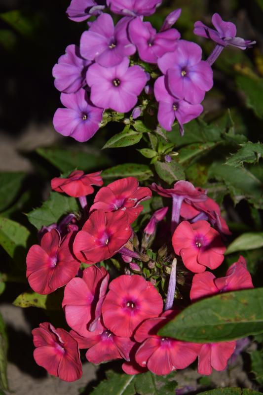 In der Dämmerung zeigt sich der Sämling von 'Freudenfeuer' in verruchtem Rot, der Sämling von 'Mister X' bekam blaue Augen.