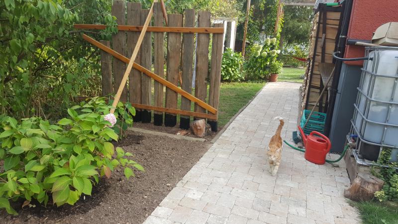 Auf seiner To-Do-Liste stand ein - hm, wie nenne ich es mal - zaunähnliches "Element", welches das neue Staudenbeet zum dahinterliegenden Platz der Wäschespinne abgrenzen soll.