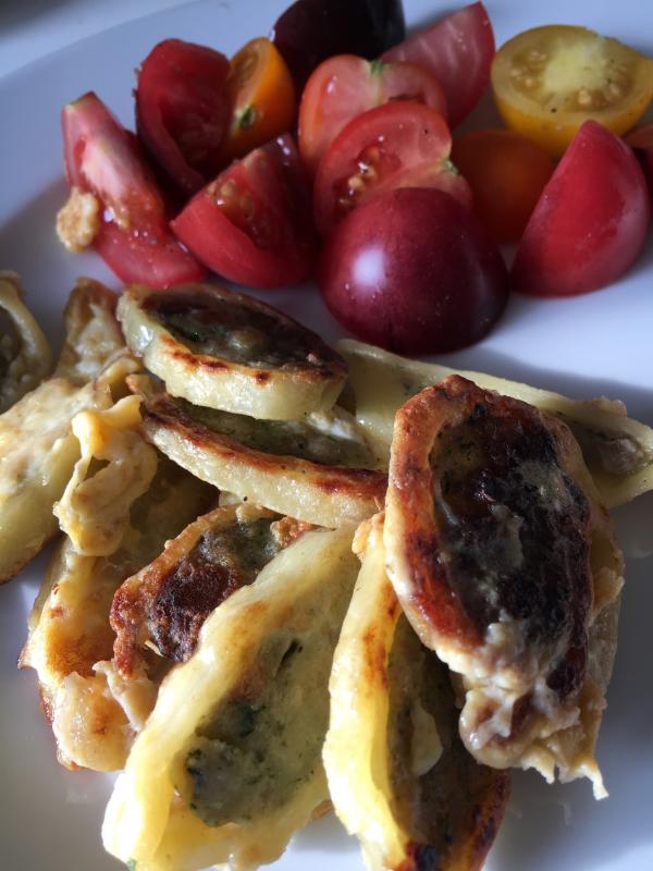 Heute gabs schnelle gebratene Maultaschen mit Tomatensalat