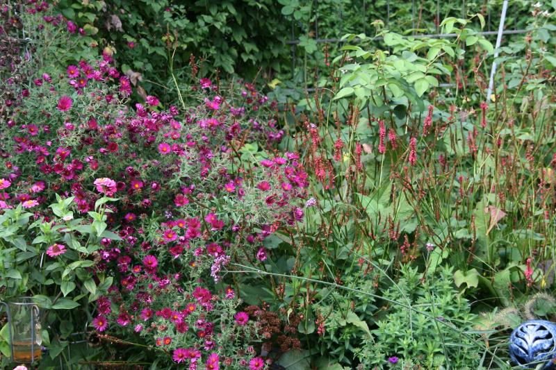 'Septemberrubin' mit 'Treffpunkt', im Hintergrund müsste 'Lutetia' blühen.