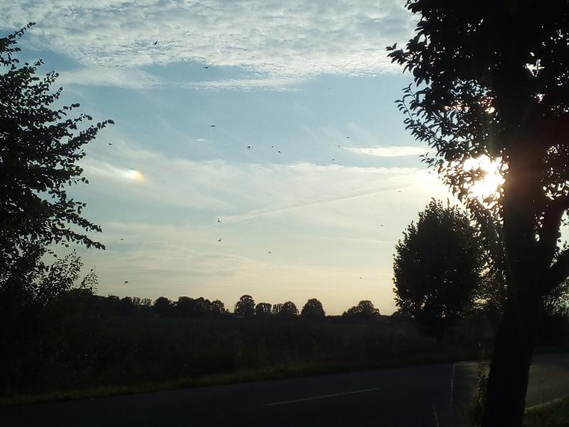 Das Bild ist schon eine Woche alt, vorher hatte es ein bisschen geregnet, deshalb hielt ich es zunächst für einen Regenbogen. Jetzt zeigte jemand im Naturfotografenforum etwas Ähnliches und nannte es Lichtsäule.