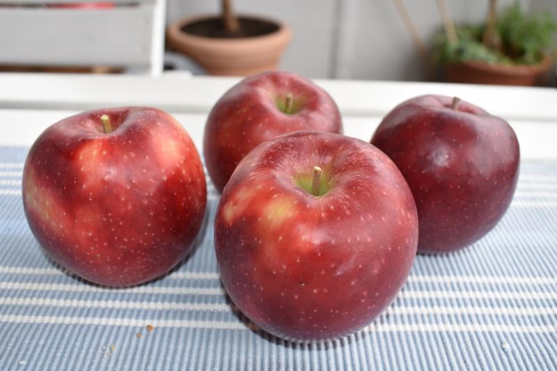 Ich habe vorm Sturm noch schnell die letzten rotfleischigen Äpfel "Schneewittchenapfel Pekacervena" vom Baum geholt.