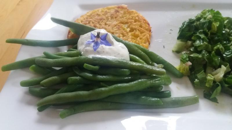 Rösti mit grünen Bohnen und Kräuterquark