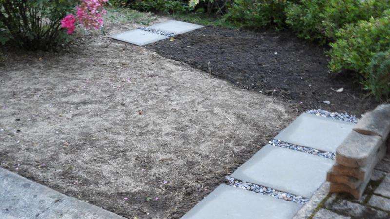 Blick aus dem Wohnzimmerfenster, "Morgengrauen". ::) ;) Ich musste ein bisschen sanieren, der heisse Sommer hat dort alles Gras mitgenommen und ein paar Engerlinge, die in der Erde sassen, haben wohl mitgeholfen. Wo die dunklere Erde ist ziehen bald Herbstastern ein, wo es hell ist wird hoffentlich wieder Gras wachsen.