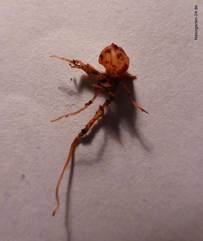 und so sieht der hypogäische Keimling (erste Keimphase bei Cyclamen hederifolium) unterirdisch noch keine Keimblätter vorhanden ca. 20-25 Tage nach Aussaat