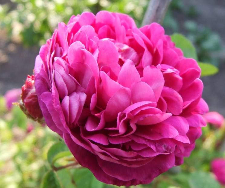 Das variiert je nach Alter und Ernährungszustand: Ältere, gut gefütterte Exemplare schaffen etwas mehr an Blütendurchmesserals Rose de Resht, das wären dann ca. sieben cm, schätze ich (jetzt isses zu dunkel zum Nachmessen