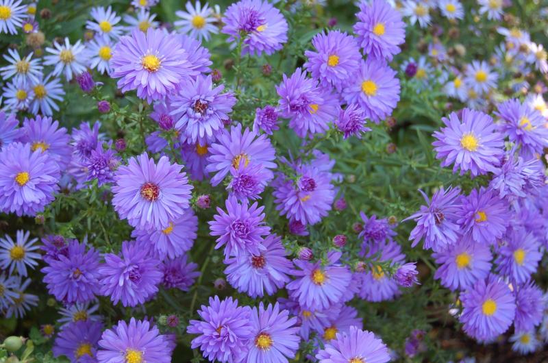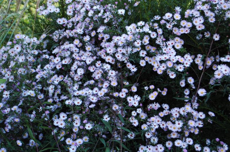 Im Frühjahr nerven mich die Wucherastern immer mit ihrem alles durchwebendem Wurzelfilz ,im Herbst kann ich aber nie genug davon bekommen,weil die asternblauen und lila Wolken einfach schön sind.