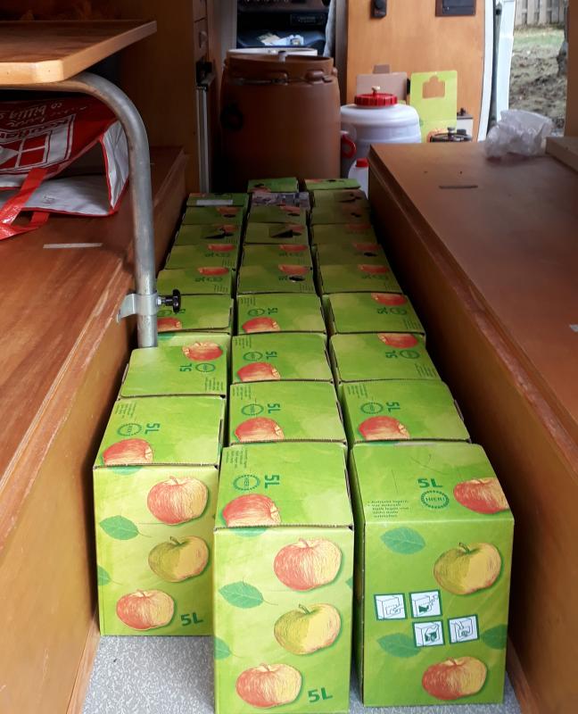 Bei uns dagegen gibt es Rekordernten, nach dem Spätfrost 2017 mit Minimalernte waren die Bäume ausgeruht und tragen was geht. Äpfel, Birnen, Pfirsiche, Trauben und Minikiwi im Überfluss.