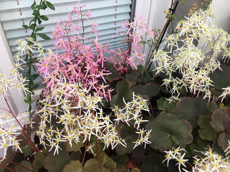 Sax. fortunei 'Buckland', wie immer, schön früh am blühen.