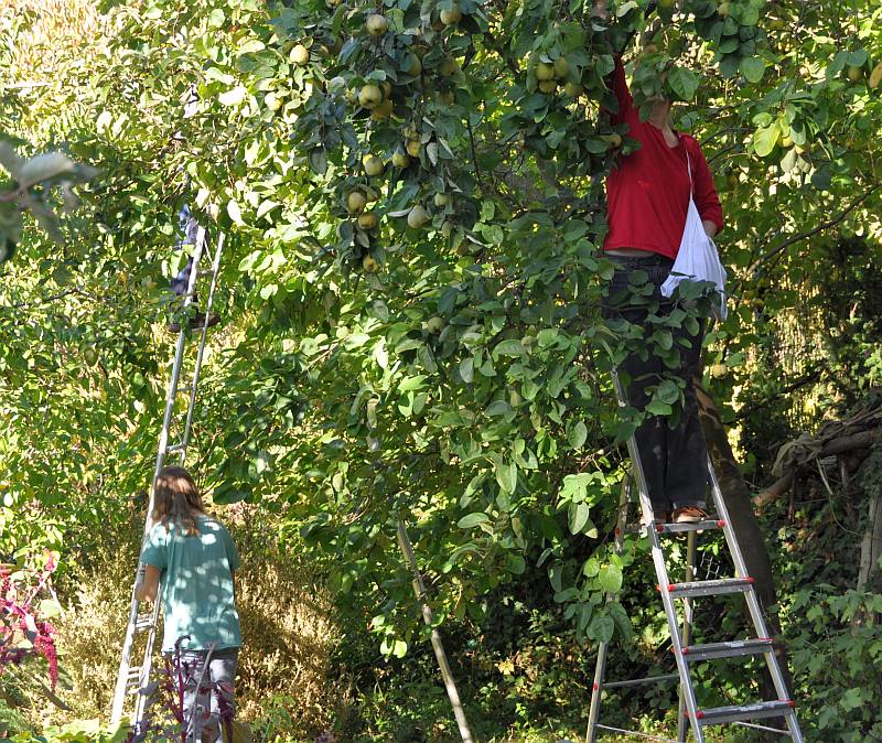 Wir haben heute Quitten geerntet, mit fleissigen Erntehelfern, die auch noch einen leckeren Zwetschgenkuchen mitgebracht haben :D.