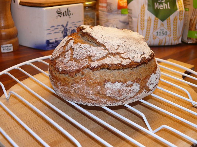 Sieht super aus, dein Brot :D bin gespannt wie es dir schmeckt! Der Längsriss deutet auf Untergare hin, ist aber nicht schlimm, schmecken wirds sicherlich trotzdem. Ich mache gleich immer die doppelte Menge und ein großes Brot. Das ist Ruckzuck bei uns weg ;)