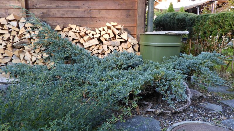 Mir zunehmendem Alter (und vehementem Schnitt vorne (was man leider sieht) weil Stolperfalle) lernt dieser Kriechwacholder wahrscheinlich irgendwann noch das Fliegen.