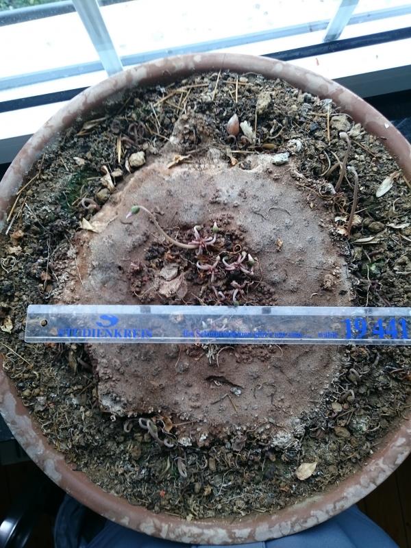 Obwohl viele Leute (ich auch) die graecum gerne mit sichtbarer Knolle pflanzen, passiert das hier manchmal ebenso. Ich habe schon tief sitzende graecum mit reichlich Laub und Blüten, in der Ruhezeit umgetopft und hochgepflanzt, um mich an dem schicken Caudex zu freuen. In den folgenden Jahren haben Blätter und Blüten kontinuierlich abgenommen und sind dann recht zaghaft an den tieferliegenden Rändern wieder aufgetaucht. Nach anschließendem Tiefersetzen haben die Pflanzen ihre gewohnte Fülle wieder erreicht.