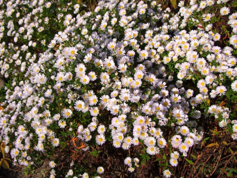 Ganz gut gefällt mir Boltonia 'Snowbank'.Im letztem Jahr noch verhalten,legte sie jetzt richtig los.Die kleinen Gänseblümchen sind in der Masse sehr schön anzusehen.