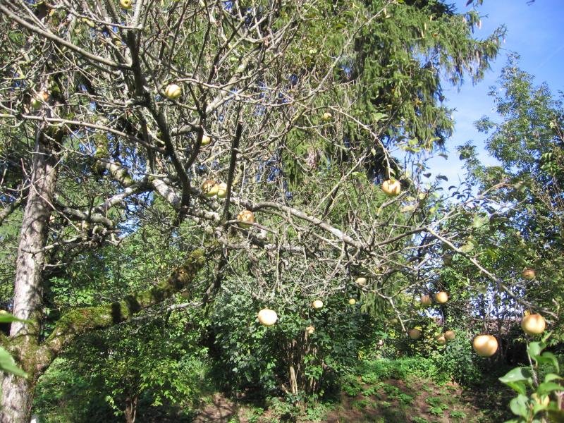 Der Baum links im Hintergrund ist ein Prinzenapfel der davon völlig unbeeindruckt ist.