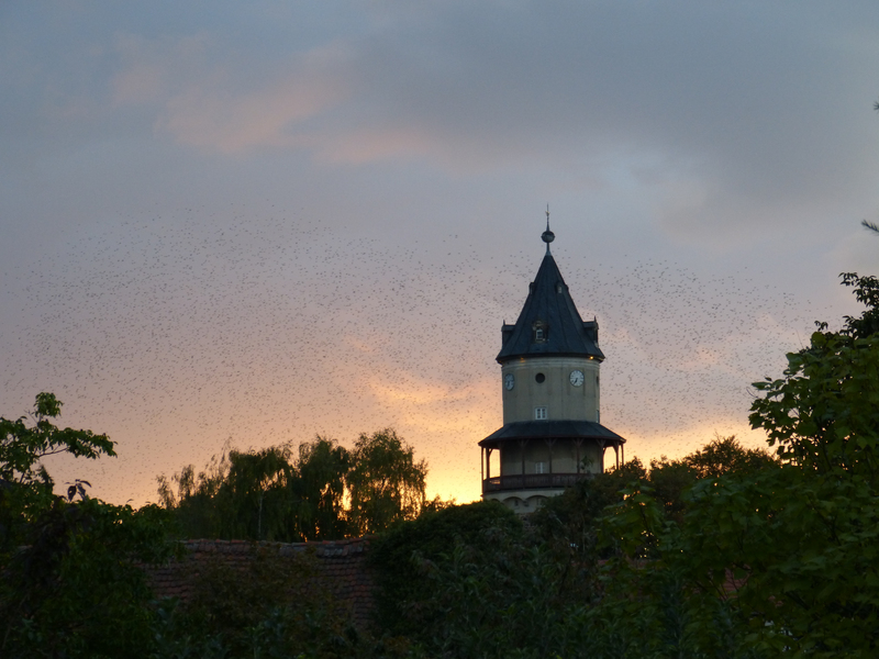 Die Stare waren frühzeitig verschwunden. Nun tauchen sie in großen Schwärmen auf und geben jeden Abend ein großes Schauspiel, bevor sie sich lautstark zur Rast sammeln.