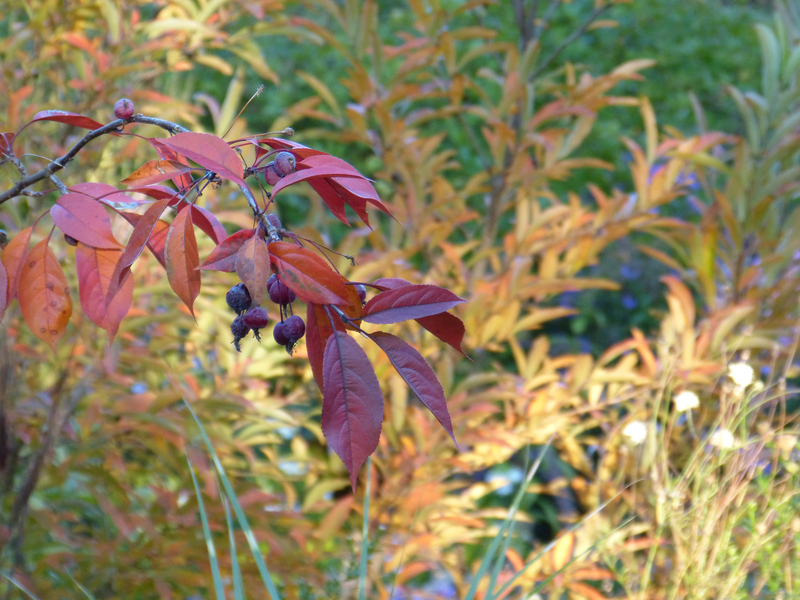 Lindera angustifolia startet auch langsam zum Farbfeuerwerk. Dieses Jahr hat sie sogar Früchte angesetzt. Ob die Aussaat lohnt?