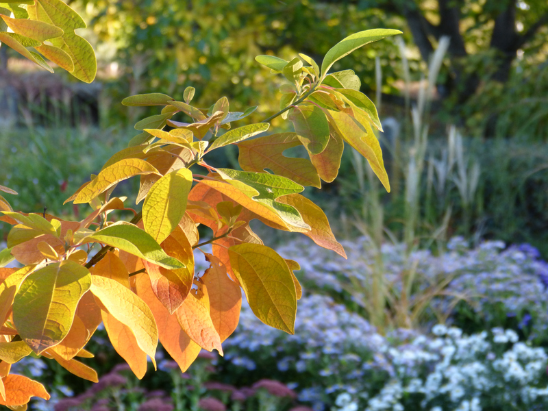 Lindera angustifolia startet auch langsam zum Farbfeuerwerk. Dieses Jahr hat sie sogar Früchte angesetzt. Ob die Aussaat lohnt?