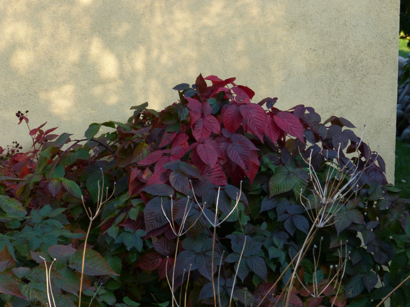 Im vorgarten ist eine Brombeere wild aufgegangen. Die Färbung hat ja was. Dennoch, die muss weg.